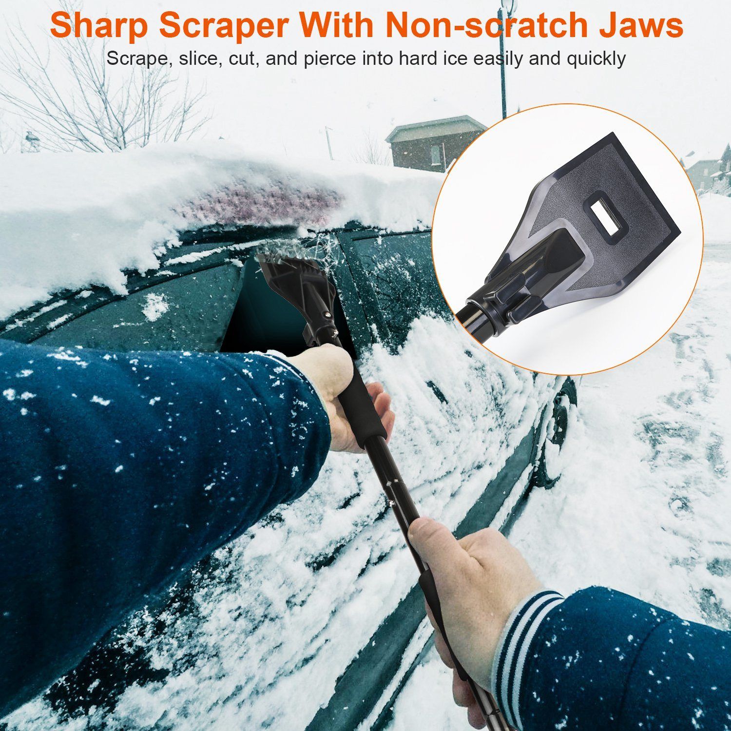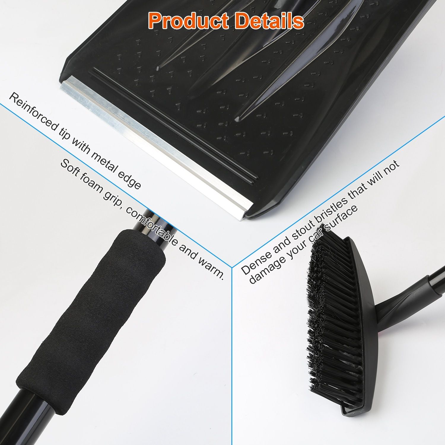 1.3-in-1 multi-functional snow clearing kit: this snow clearing kit is equipped with a multi-functional 3-in-1 use where the shovel can be utilized as a snow shovel, ice scrape, and snow brush, the brush can be used to sweep snow while the scraper can scrape ice or frost, the large snow shovel is sturdy enough to remove heavy snow from your backyard or roadside