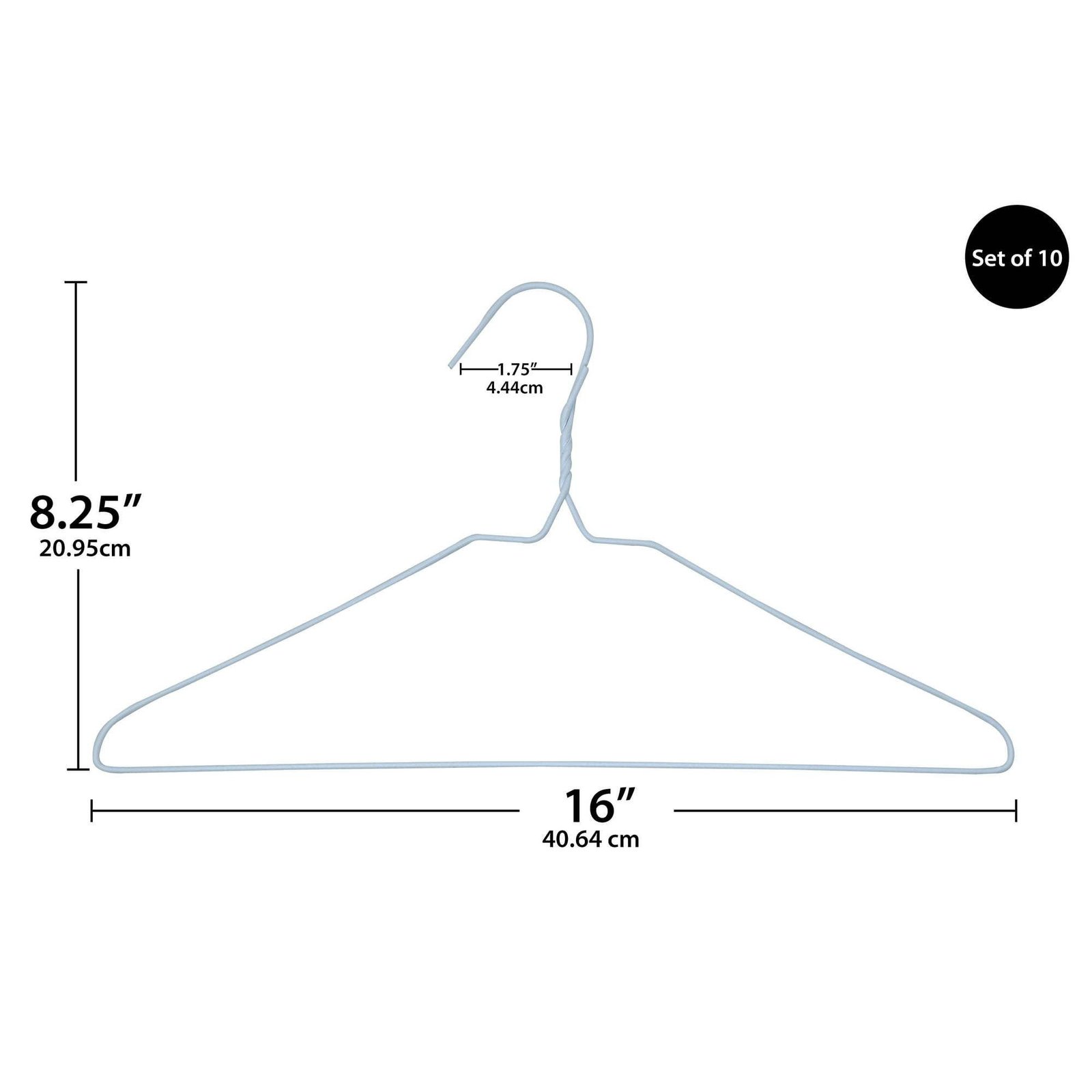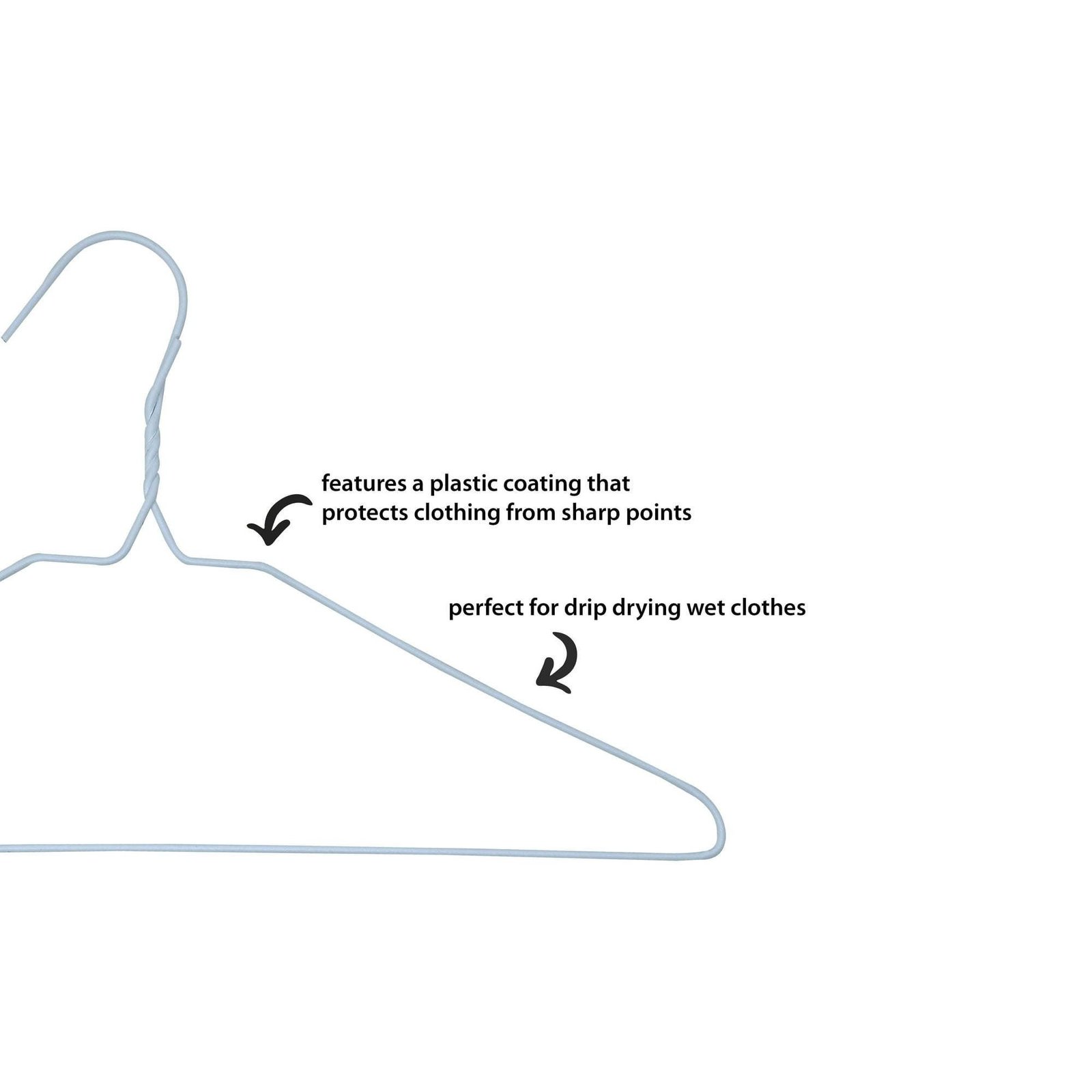 Drip Dry Plastic Coated White Wire Hangers, 10-Pack, are a must have product to have in your home! Use them to keep your clothes neat and organized in the closet, dorm, or laundry room. Eliminate the need of folding your clothing and maximize your storage space. These hangers can be used every day for tidying up the closet and keeping favorite clothing items visible and off of the floor. They feature a slimmer profile design than regular versions, to maximize your closet space while still keeping your clothing wrinkle-free and secure. They’re ideal for hanging heavy garments and wet clothes to drip dry. Use for pants, skirts, tops, blouses, t-shirts, or coats. Offered in a pack of 10, these wire hangers have a neutral finish that complements almost any style. With the plastic coating, they’re also rust and corrosion resistant. To clean, wipe gently with a damp cloth. Perfect and good for teen ages and adult ages.