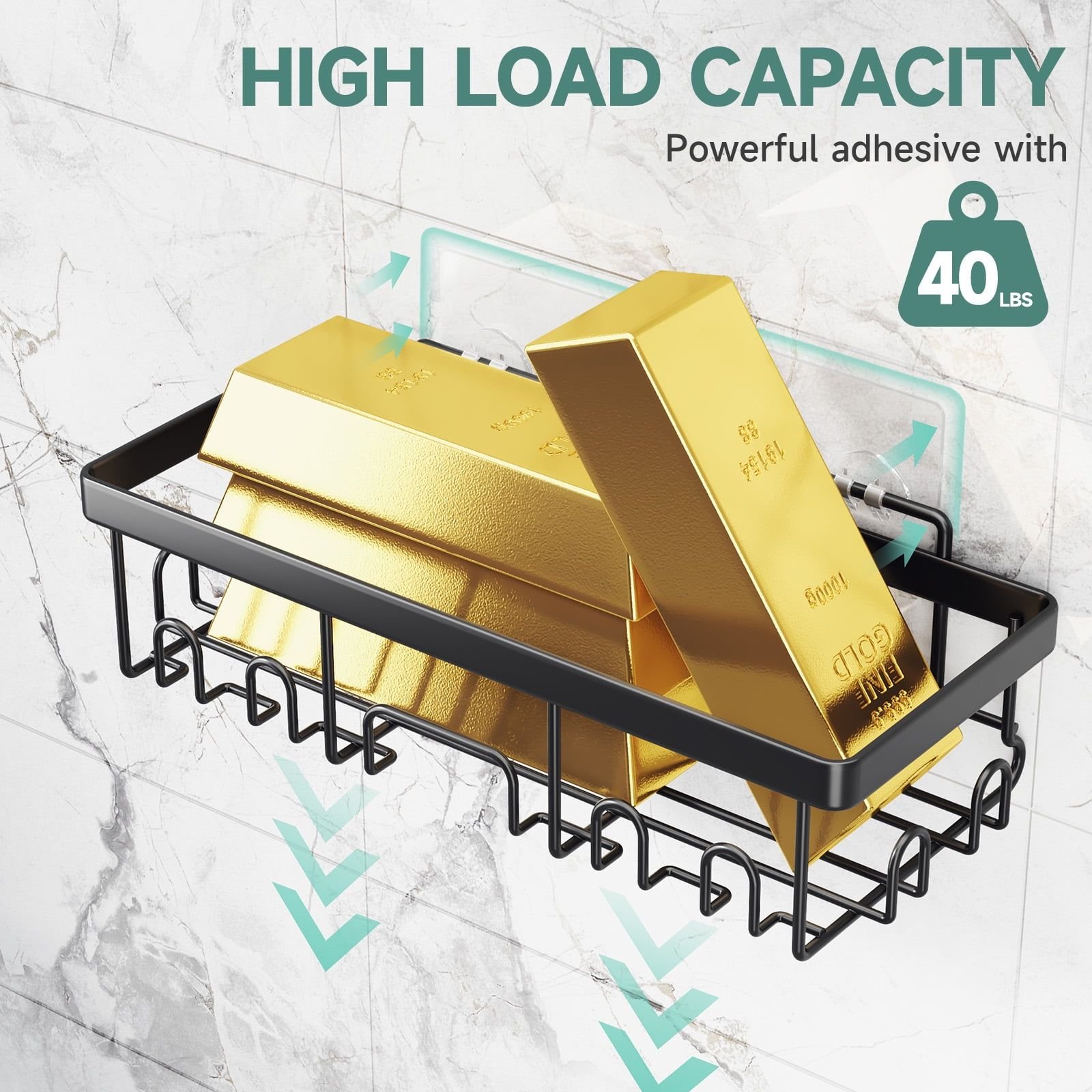 Large Capacity Bathroom Organizers and Storage, No Drilling Wall-Mounted Basket, Black